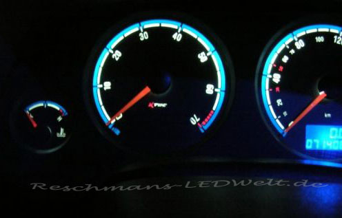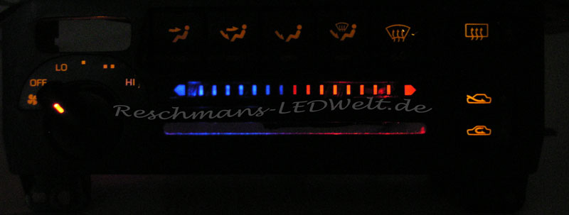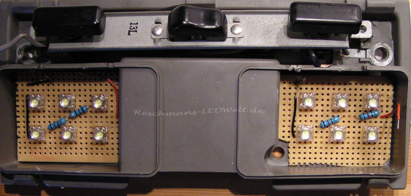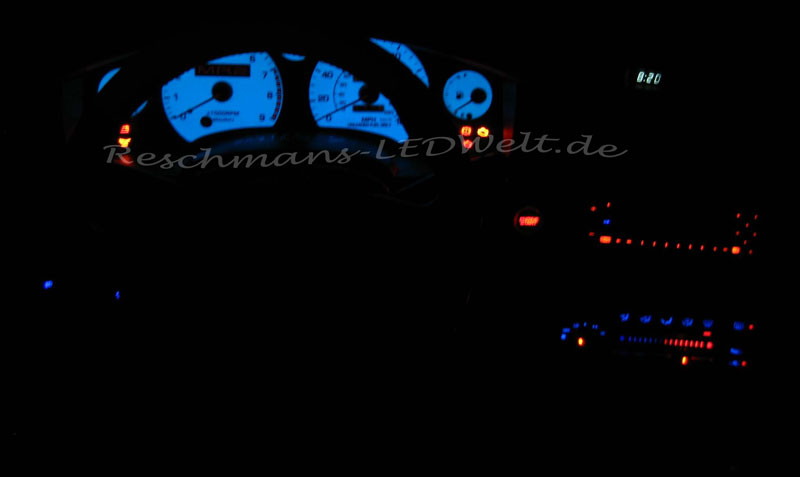 Da es in einen Golf 1 sollte und die blaue Beleuchtung nicht gepasst hatte, haben ich geholfen es Rot/Weiß umzubauen!